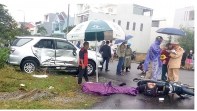 Tại hiện trường, chiếc xe ôtô gây tai nạn dừng ở vệ đường, cửa xe bên phải bẹp dúm. Ở phía sau, sát lề đường bên phải là 2 nạn nhân đã tử vong và chiếc xe máy.